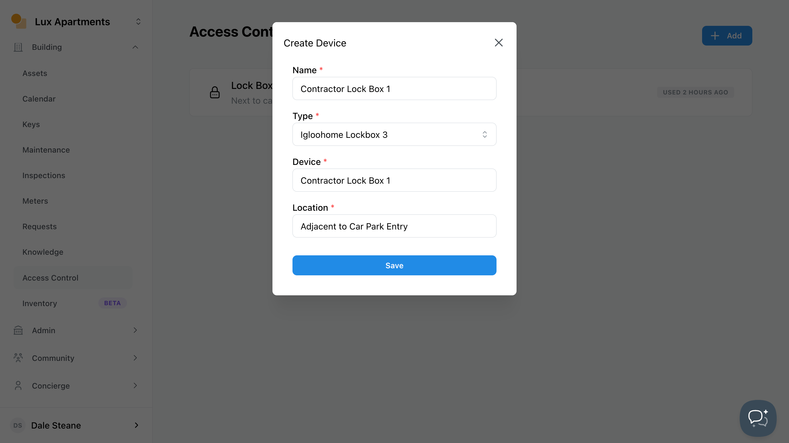 Add Lockbox to site in Access Control