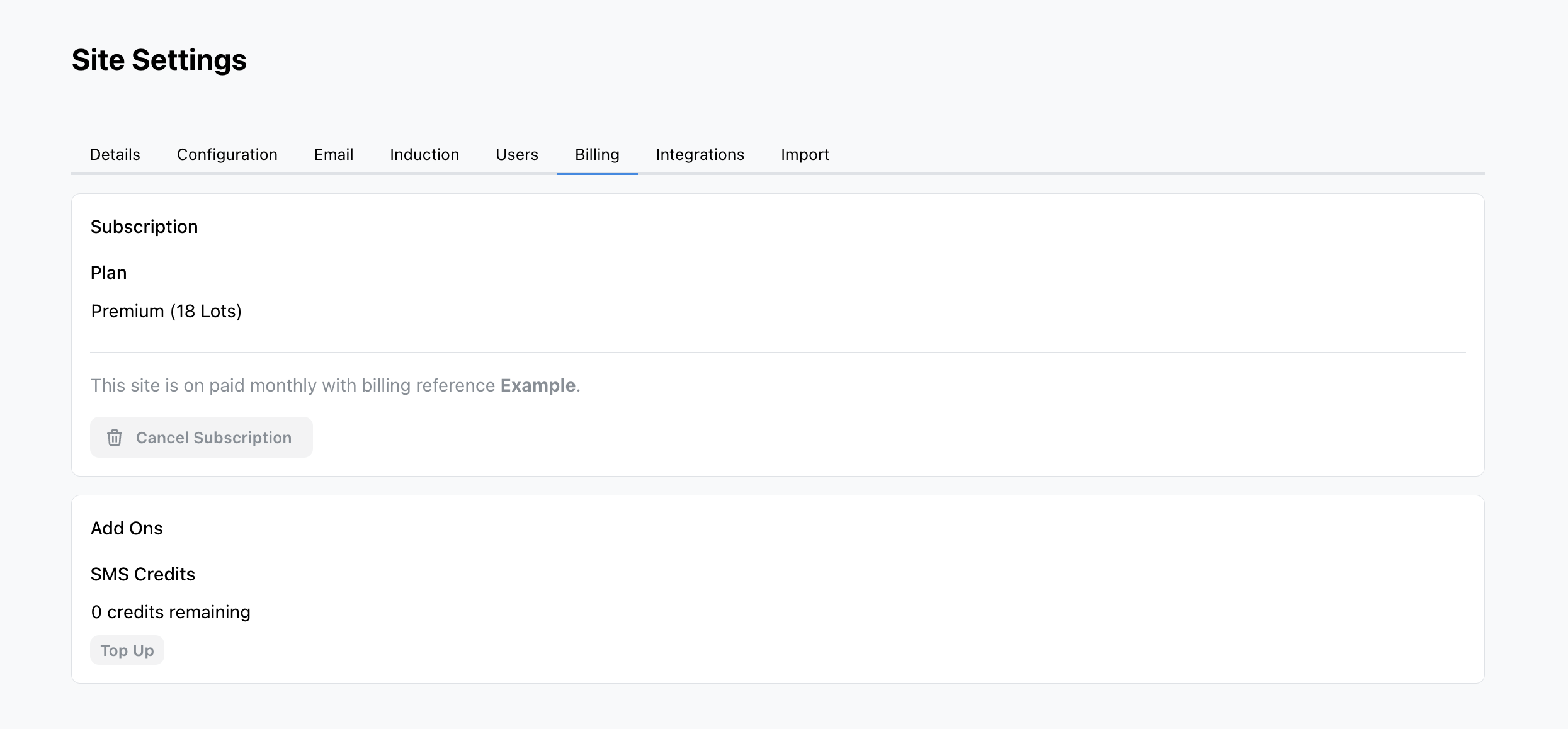 Site Settings/Billing - Click